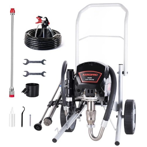 AEROPRO 550 — это безвоздушный поршневой насос. Комплект поставки позволит вам работать с большим спектром материалов: грунтовками, лаками, эмалями, маслами, красками на растворителях, а так же интерьерными и фасадными красками на водной основе.