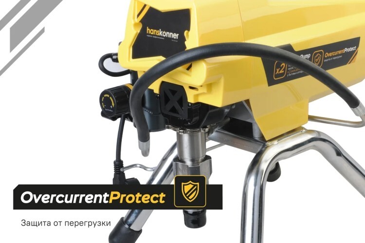 Дополнительный фильтр для очистки краски исключает частое засорение сопла. Надежный поршневой насос EndurPump в среднем служить в два раза дольше чем бытовые аналоги. Для долговечности электродвигателя применяется защита от перегрузки.
