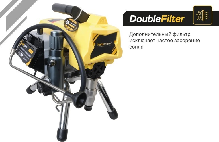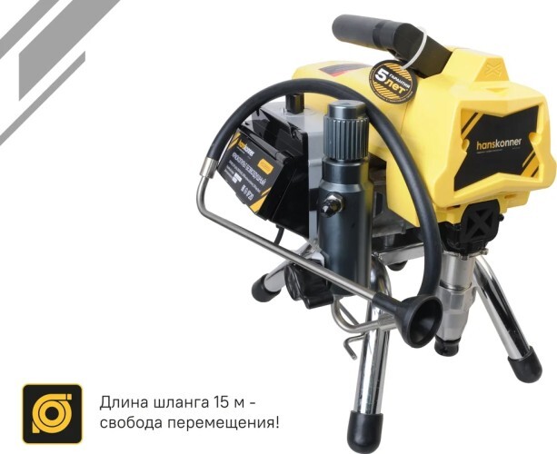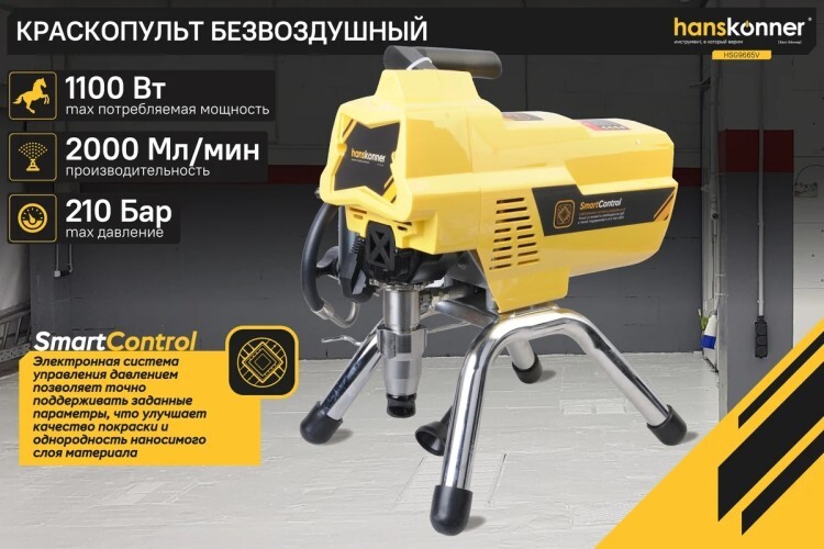 Краскопульт безвоздушный Hanskonner HSG9665V — надежный и продуктивный электроинструмент для нанесения лакокрасочных материалов без использования сжатого воздуха. Данная модель отличается электронной системой управления давлением SmartControl, что содействует качественному окрашиванию и дает возможность осуществлять интерьерную покраску. Для удобного регулирования продуктивности есть электронный дисплей.