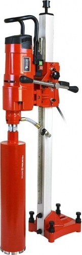 Мощная односкоростная сверлильная машина с ненаклонной стойкой, подойдет для сверления отверстий в бетоне, железобетоне, кирпичной кладке и других строительных материалах.