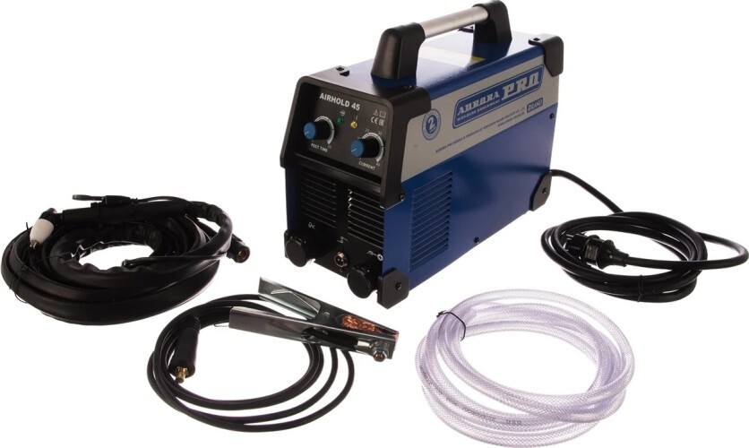 AIRHOLD 45 предназначен для плазменной резки любых токопроводящих материалов: мягкие стали, нержавеющие стали, оцинкованные стали, алюминий, медь и различные сплавы. Работа данным аппаратом отличается высоким качеством и высокой скоростью резки. При весе источника всего 7кг максимальная толщина разделительного реза листовой конструкционной стали составляет 12 мм. Для подачи сжатого воздуха к инвертору необходимо подключение компрессора.