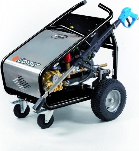 Аппарат высокого давления (АВД) экстра класса. Непрерывное применение без подогрева воды. Насос для интенсивного использования с системой Total Stop с задержкой (отключение при закрытии пистолета). Область применения : автомойки, производство, пищевая промышленность, строительство и т.д.). Прочная и надежная конструкция с корпусом из нержавеющей стали. Картриджный фильтр всасывания с высокой пропускной способностью, с высокими фильтрующими характеристиками. Манометр давления с корпусом из нержавеющей стали. Прокладки для горячей воды Четырехполюсный двигатель (1400 оборотов/мин.), с усиленными характеристиками и защищенный окрашиванием. Пневматические колеса со стальной ступицей и камерой. Высокопрофессиональный регулировочный клапан давления с наружным байпасом. Соединение двигатель- насос при помощи упругого соединения. Синхронизированный TotalStop FLOW-SENSITIVE. Панели управления с низким напряжением. Дистанционный выключатель. Термозащита двигателя.