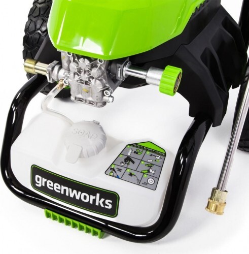 Мойка высокого давления Greenworks (модель GHP2000) — применяется для мойки авто/мото техники, придомовых территорий, дорожек, площадок, садового инвентаря и т.д. Двигатель с медной обмоткой и потреблением 1800 Вт. Помпа из алюминия с поршнем из нержавеющей стали обеспечивает максимальное давление 140 бар и производительность равную 360 л/час. Для защиты авто мойки от разрушения помпы в следствии нагнетания излишнего давления, предусмотрена система «FullStop» — полное отключение при отпускании курка пистолета распылителя, также предусмотрен автоматический перепускной клапан со сбросом давления. Коннекторы пистолета быстро зажимные для удобной смены насадок. Пистолет-распылитель усилен и оснащается распылителем из стали. На металлическом корпусе предусмотрены места для хранения электрического провода, шланга и пистолета.