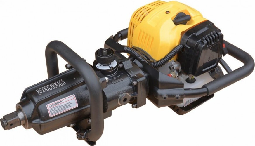 Ударный гайковерт с двухтактным бензиновым двигателем, является профессиональным инструментом и предназначен для постоянного использования. Главным образом этот инструмент используется в строительстве и ремонте железнодорожных путей. Применяется для откручивания, закручивания резьбовых соединений. В отличии от электрического, он более мощный и не требует источника электропитания. По сравнению с пневматическими или гидравлическими, использование бензинового гайковерта не требует дополнительной спецтехники, Значительно ниже по стоимости. Обладает моментом затяжки в 1700 Нм. Квадрат шпинделя у этой модели составляет 1 дюйм. Мощность двигателя инструмента — 1,7 кВт.