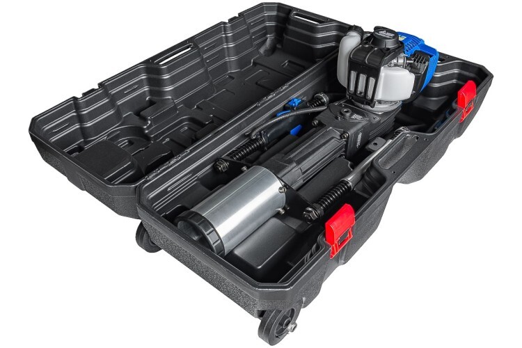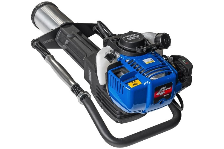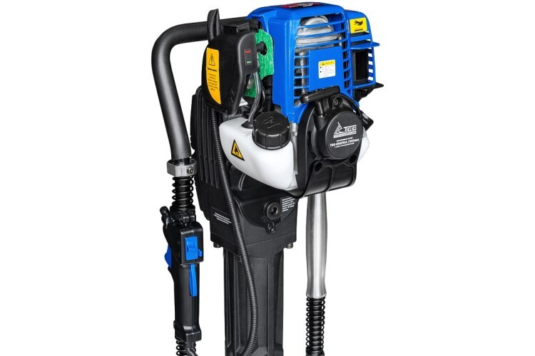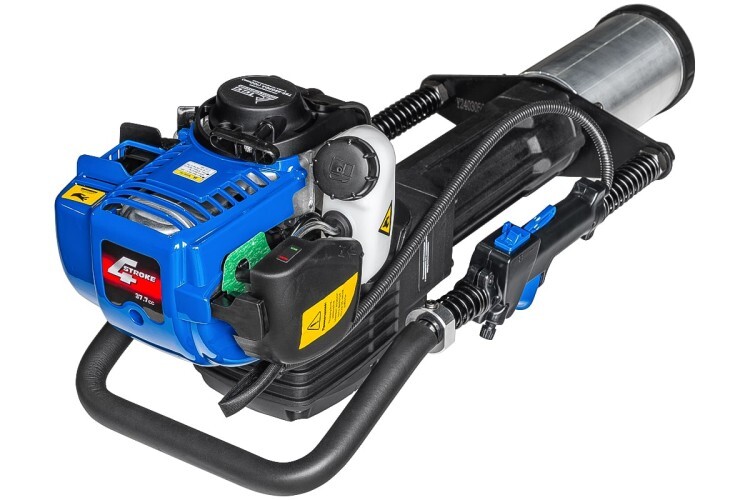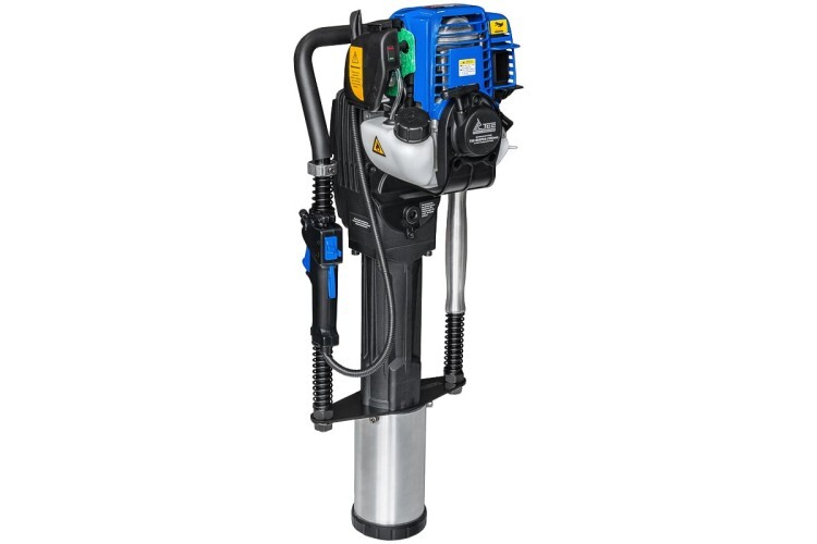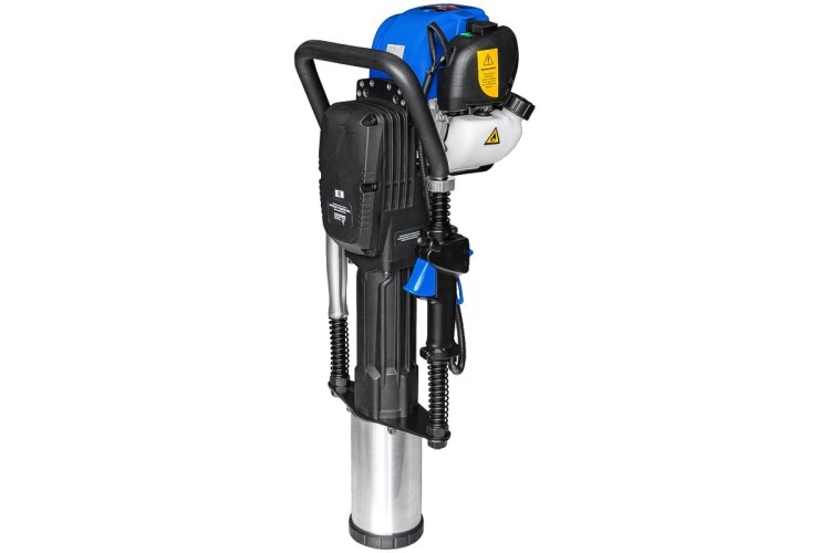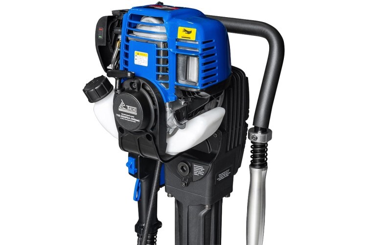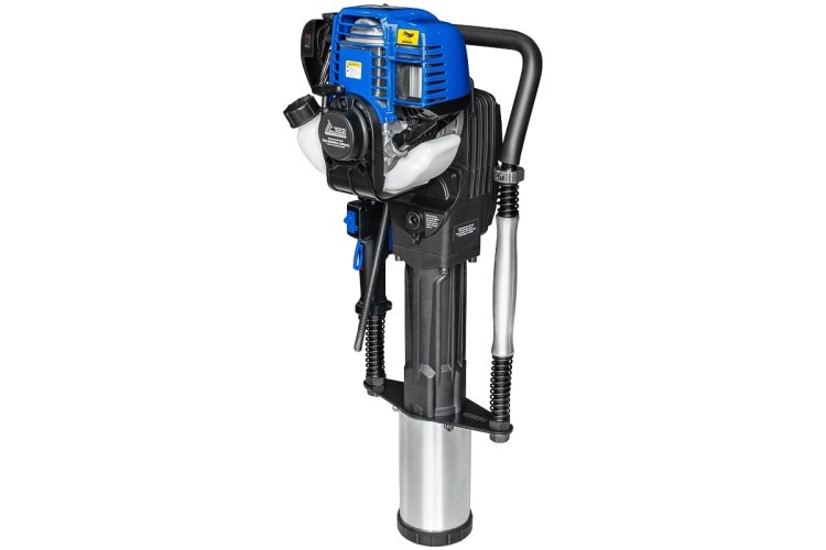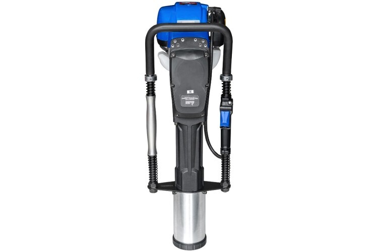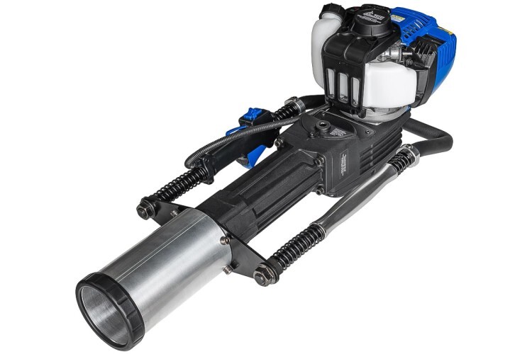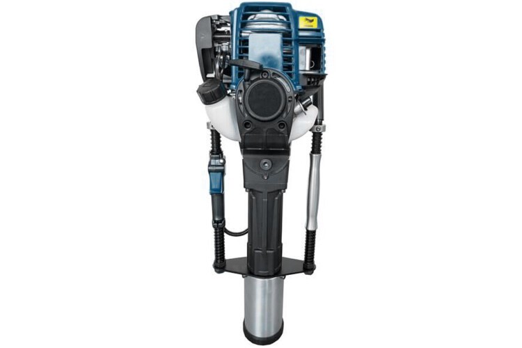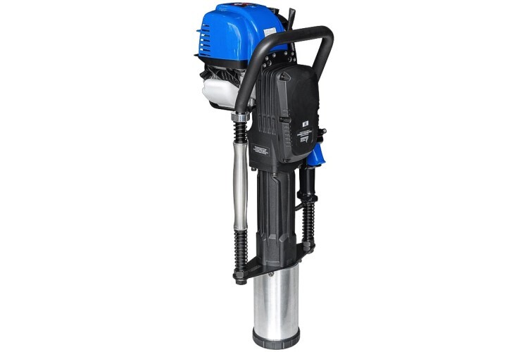 Копер с бензиновым четырехтактным двигателем для забивки столбов диаметорм до 100 мм. Главным образом этот инструмент используется при строительстве ограждений. В отличии от электрического, он более мощный и не требует источника электропитания. По сравнению с пневматическими или гидравлическими, использование бензинового копера не требует дополнительной спецтехники,