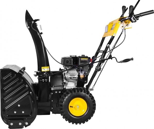 Приборы управления (стартер, рычаг переключения передач, кнопка газа, тормоз) располагаются на рукоятках управления. Более того, правая ручка несёт на себе мощную фару освещения для проведения работ по очистке снега в тёмное время суток.