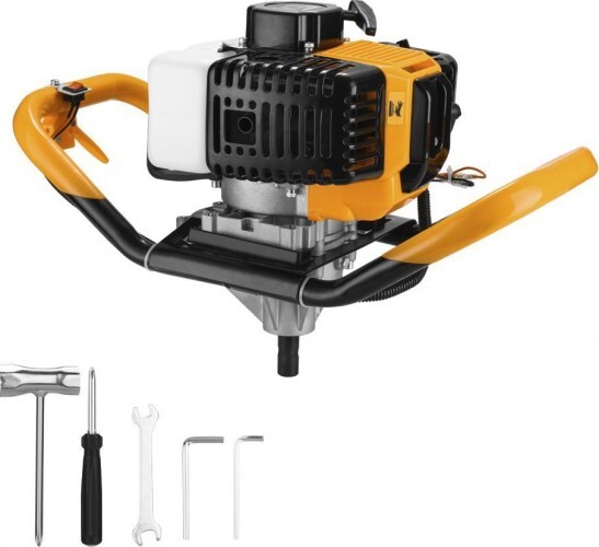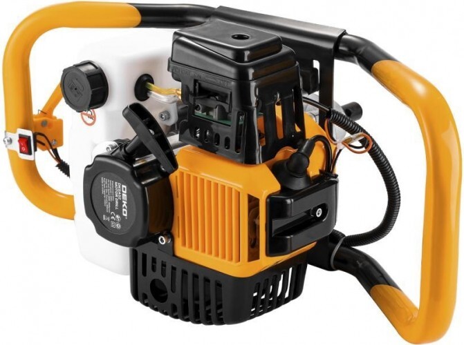 Мотобур DKGA52 предназначен для сверления отверстий в грунте или льде при помощи металлического шнека (не входит в комплект), приводимой в движение бензиновым двигателем. Инструмент оснащен двухтактным двигателем с воздушным охлаждением. Имеет устойчивые к деформации металлические рукоятки. Инструмент работает на смеси бензина АИ-92 и двухтактного масла в пропорции 25:1.