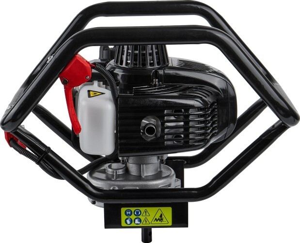 Бензиновый мотобур ELITECH EA 70D43 с двухтактным двигателем мощностью 3,3 л.с. (2,5 кВт) и передаточным числом редуктора 43 к 1, предназначен для бурения грунта и льда шнеком диаметром от 40 мм до 300 мм на глубину до 1,8 метров. При эксплуатации мотобура необходимо правильно выбрать тип шнека (для грунта, для мерзлого грунта или для льда). Шнеки для разных типов грунта отличаются режущей головкой.