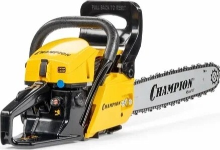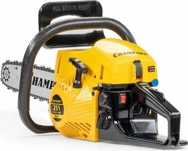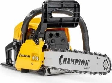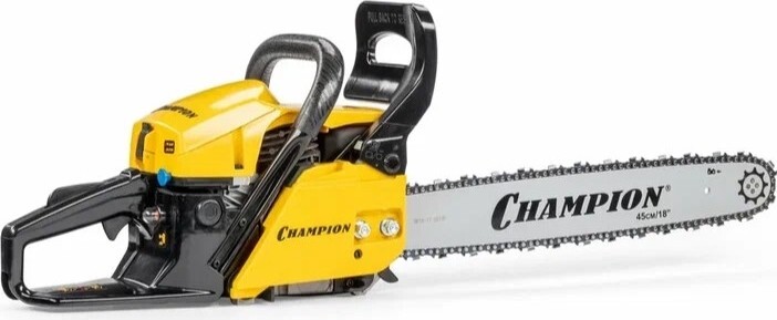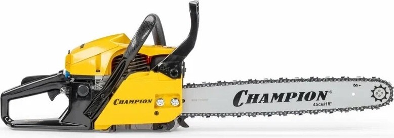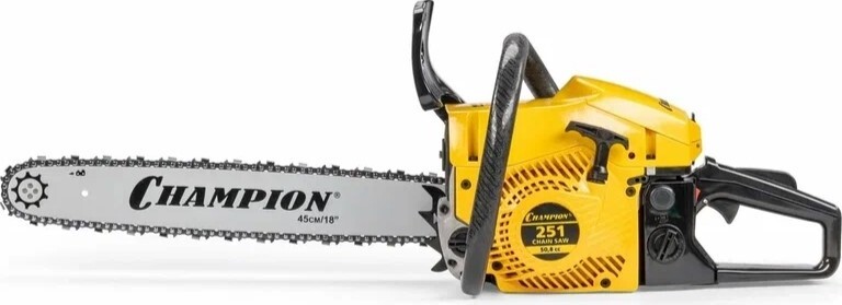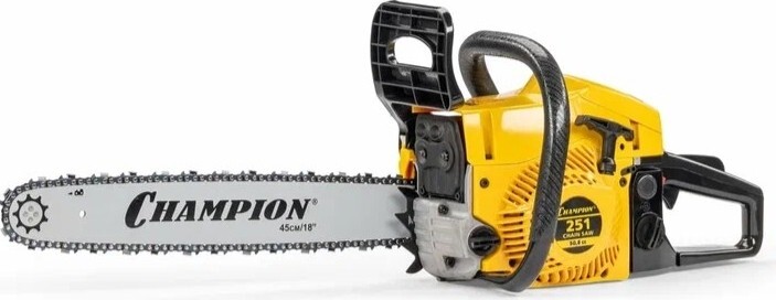 Бензопила Champion 251-18 – мощная бензиновая модель позиционируемая производителем как профессиональная. Мощность двухтактного мотора пилы составляет 3,13 лошадиные силы, а длина полотна достигает 45 см. Натяжение цепи боковое, сама шина имеет четыре точки крепления ведомой звездочки. За подачу топливной смеси отвечает диафрагменный карбюратор Walbro. Стартер у пилы ручной с системой легкого запуска, упрощающей продергивание шнура кик стартера на 30%.