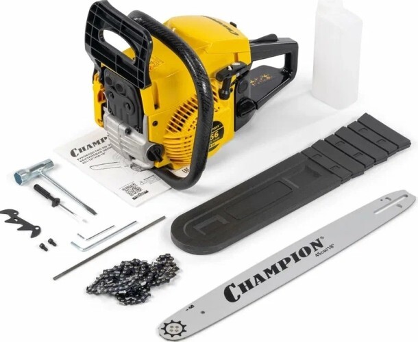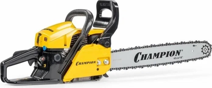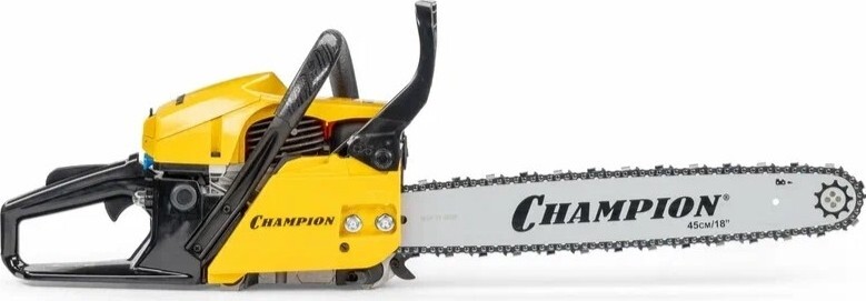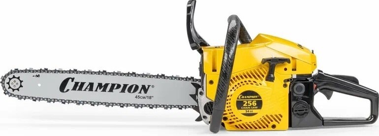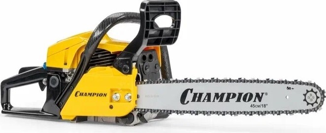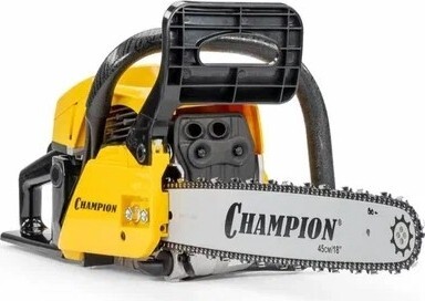Длина пильного полотна составляет 45 см, что позволяет валить деревья большого диаметра. Пильное полотно имеет ширину паза 1,5 мм, а его ведомая звездочка крепиться на четырех клепках. Бензопила Champion 256-18 оборудована надежным диафрагменным карбюратором, обеспечивающим уверенный запуск даже при отрицательных температурах. Для работы зимой у пилы предусмотрен подогрев карбюратора за счет направления на него горячих выхлопных газов.