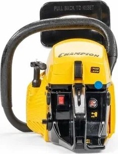 Бензопила Champion 256-18 – бюджетная мощная модель профессионального класса. Мощность двухтактного двигателя пилы составляет 3,4 лошадиные силы. Двигатель работает на смеси 92го бензина с двухтактным маслом в пропорции 50 к 1. Для запуска двигателя такого большого объема и мощности предусмотрена система облегчающая усилие при продергивании кик стартера на 30%.