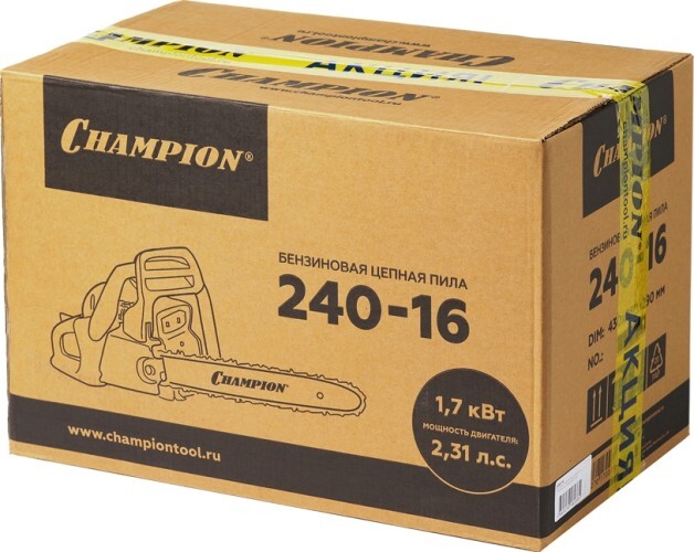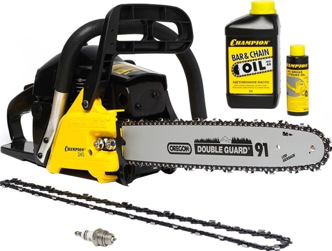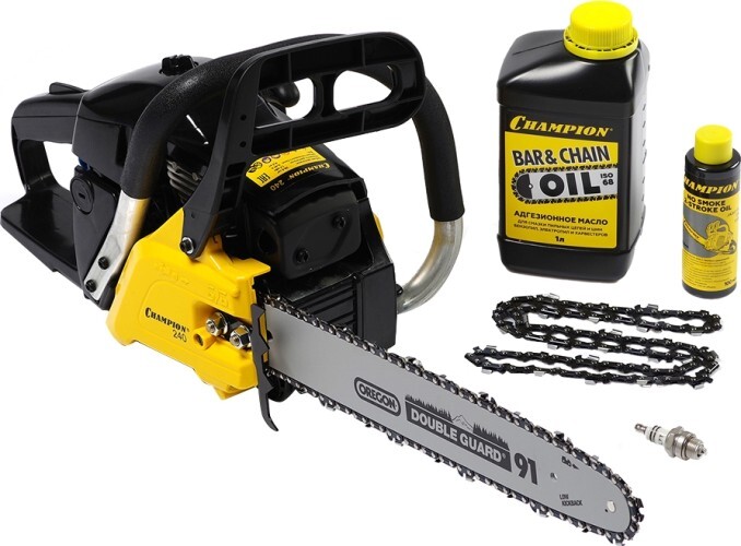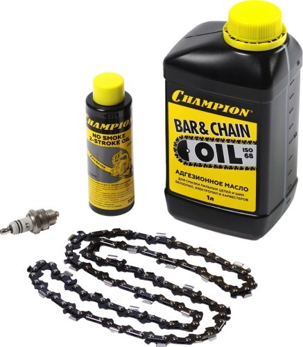 Бензопила CHAMPION A240-16 PROMO + подарочный набор используется при валке деревьев, обрезке ветвей, для распиливания заготовок из древесины.