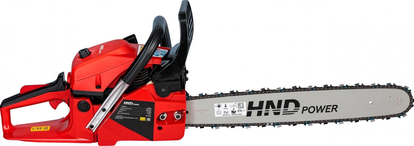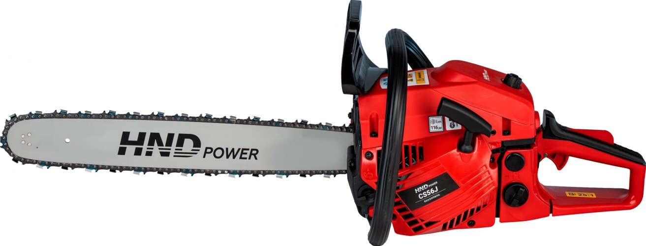 HND CS56J – легкая бензопила с длиной шины 20 дюймов (50,8 см), эффективно справится с решением поставленных задач, отлично подойдет для владельцев участков или фермерских хозяйств для пиления как небольших, так и крупных деревьев, распила деревяных заготовок, ухода за садом или заготовки дров, а также при проведении строительных работ.