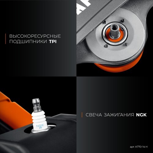 Бензорез KRAFTOOL K770-14 H предназначен для выполнения резов в литом бетоне, камне, кирпиче, металлических конструкциях, стенах, асфальте и бордюрах. Универсальный бензорез оснащен одной из самых результативных центробежных систем очистки воздуха нового поколения, которая обеспечивает работу инструмента без замены фильтра в течение до одного года, а также встроенной автоматической системой компенсации загрязнения фильтра и высокоэффективной системой подавления вибраций, оснащается двигателем, который уменьшает выбросы на 50% и расход топлива максимум на 25%.