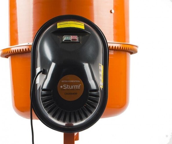 Бетономешалка Sturm CM20120R отличается от аналогов большим диаметром загрузочного отверстия, что упрощает загрузку элементов смеси и выгрузку уже готового раствора. Наклон барабана осуществляется вручную путем поворачивания большого колеса. Венец из чугуна имеет существенный запас износоустойчивости и гарантирует продолжительную работу агрегата на строительной площадке. Модель стабильно выполняет от 6 до 10 рабочих циклов в течение одного часа. Максимально допустимая загрузка - 125 кг.