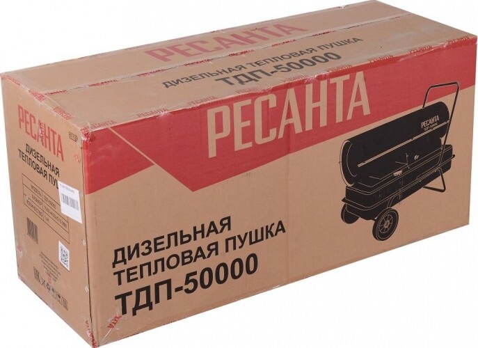 Дизельная тепловая пушка РЕСАНТА ТДП-50000 - функциональный обогреватель с прямым нагревом для отопления складских, строительных и других помещений. Наибольшее признание дизельные пушки Ресанта получили при обогреве складских, строительных и других помещений, где использование обычных видов отопления либо затруднено, либо попросту невозможно. Особенно актуально использование подобного оборудования там, где еще нет прямого подключения к электрическим сетям. Для работы тепловая дизельная пушка тоже расходует электричество, но его требуется совсем немного. Требуемую мощность вполне может обеспечить переносной генератор.