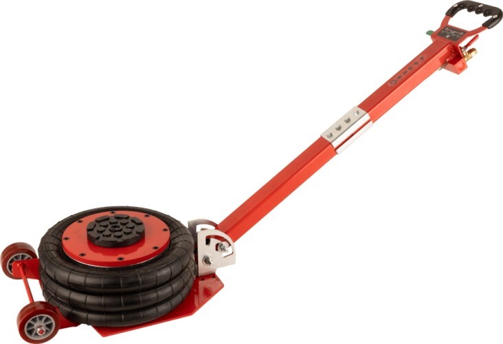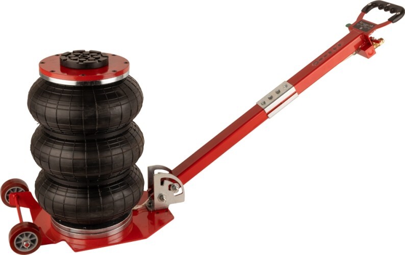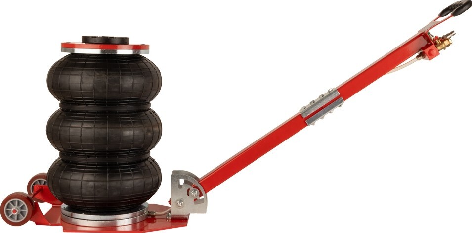 Пневматический подкатной домкрат грузоподъемностью 3000 кг. Оснащен эргономичной рукояткой с регулировкой угла наклона и колесами для легкого перемещения в рабочем пространстве. Пневматический домкрат обеспечивает подъем легковых автомобилей, микроавтобусов и легких грузовиков без приложения физических усилий оператором. При этом, обеспечиваются плавность хода при подъеме (опускании) груза и точная регулировка высоты подъема. Высота домкрата позволяет применять его для подъёма практически всех легковых автомобилей. Домкрат не нуждается в техническом обслуживании, прост в использовании. Подключение к воздушной магистрали осуществляется при помощи быстросъемного фитинга. Сжатый воздух можно подавать как напрямую с компрессора (лубрикация воздуха обязательна), так и по магистрали, которая имеется в крупных автосервисах и СТО.