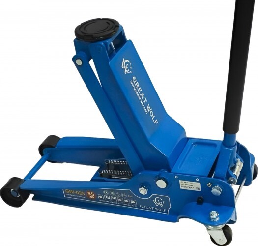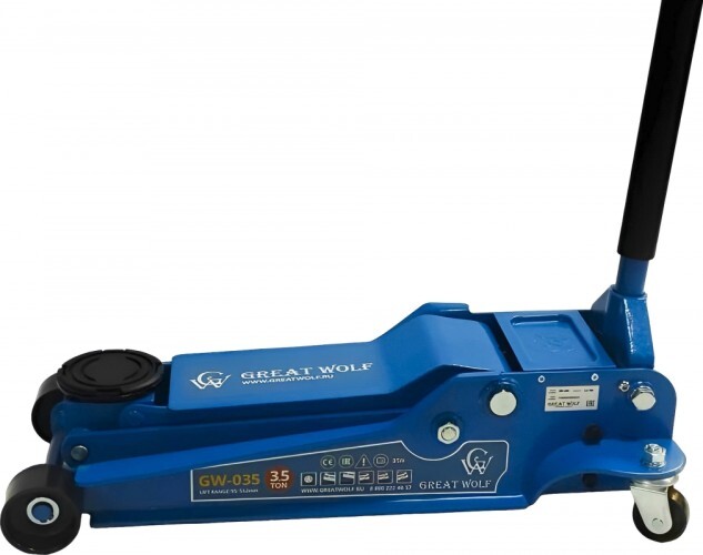 Низкопрофильный гидравлический подкатной домкрат Great Wolf 3,5 т, 95-552 мм GW-035 используется во время шиномонтажа или выполнения работ по ремонту ходовой части. Подходит для транспортных средств с низкой подвеской (клиренсом).