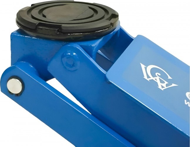 Двухштоковый механизм гарантирует быстрый подъем груза, а карданный механизм привода запорного клапана - плавное опускание автомобиля. Гидравлическая система домкрата оснащена клапаном защиты от перегрузки. Усиленная конструкция. Благодаря маневренным колесам домкрат легко и удобно перемещать.