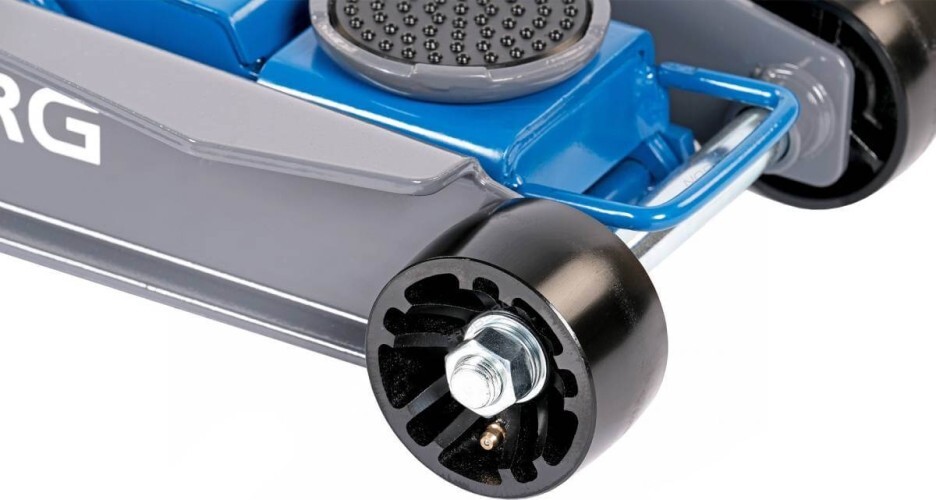Одной из особенностей домкрата является уникальная конструкция, позволяющая изменять высоту подхвата в зависимости от типа автомобиля. Для легковых автомобилей предусмотрена высота подхвата в диапазоне от 98 до 765 мм и грузоподъемностью до 2 тонн. Имеется защитная резиновая накладка, предотвращающая повреждение лакокрасочного покрытия. Для рамных автомобилей предусмотрена высота подхвата от 213 до 770 мм с грузоподъемностью до 3 тонн. В комплекте с домкратом поставляется рамная проставка, обеспечивающая стабильность и надежность при подъеме таких автомобилей.
