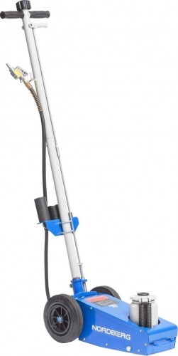 Бутылочный домкрат с воздушным управлением на подкатной тележке.