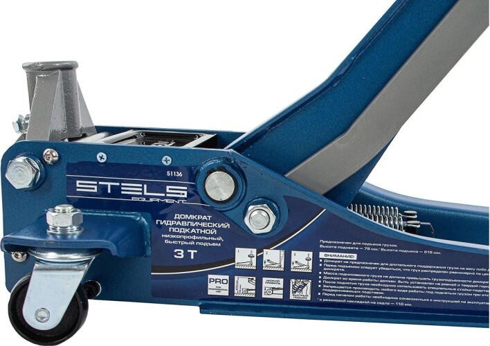 Этот домкрат от известного бренда STELS создан для работы с легковыми автомобилями, включая модели со сверхнизким клиренсом. Благодаря двухплунжерному механизму и быстрой передаче усилия он обеспечивает достижения подъема груза до 3 тонн с минимальными усилиями. Используется как в профессиональных автосервисах, так и для личного применения. Рабочий диапазон (75–515 мм) достаточно универсален, а усиленные штоки и лапы гарантируют устойчивость. Хромированные детали и специальные сальники повышают износостойкость, а прорезиненная опорная поверхность защищает кузов автомобиля.