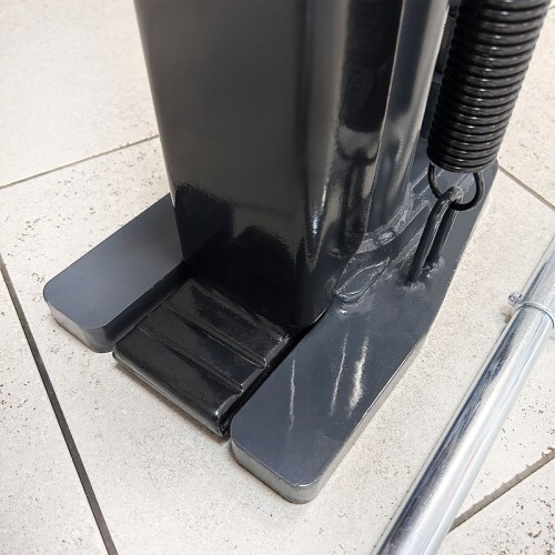 Конструктивной особенностью данного подъёмного приспособления, является захват груза практический от уровня пола. Домкрат нашёл своё применение в области монтажа станков и оборудования имеющее минимальный просвет от нулевой отметки. Внимание: при работе с домкратом рекомендуется использовать страховочные подставки для надежной фиксации груза, а так же стояночные башмаки.