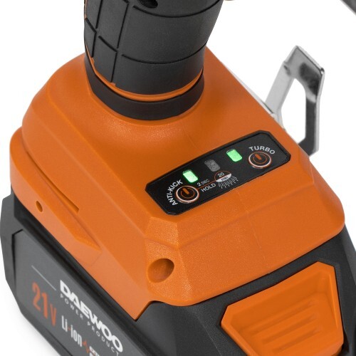 Модель совместима со всеми аккумуляторными инструментами и батареями DAEWOO линейки 21В.