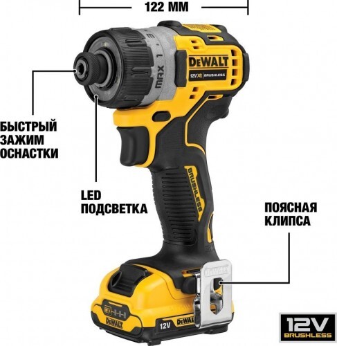 Ультракомпактный бесщеточный шуруповерт для работы в труднодоступных местах. Ультракомпактный шуруповерт длиной всего 122 мм. Износостойкий бесщёточный двигатель “Brushless”. Высокая производительность без перегрева инструмента за счёт отсутствия трения щёточного узла. 15-позиционный селектор регулировки крутящего момента. Фиксатор шпинделя для затягивания крепежа требующего приложения высокого усилия и точного контроля усилия заворачивания в ручном режиме. Поясная клипса для крепления инструмента на ремень. Эргономичный дизайн корпуса.