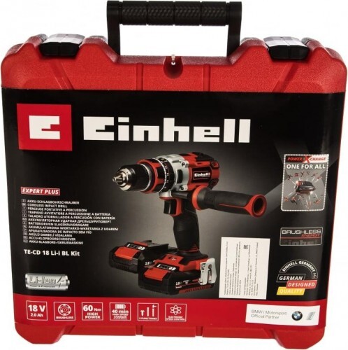 Беспроводной шуруповерт Einhell TE-CD 18 Li-i BL с бесщеточным мотором обеспечивает большую мощность и работает дольше, чем шуруповерты с обычным двигателем. Инструмент совместим со всеми батареями Power-X-Change.