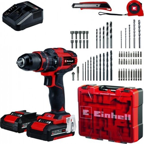 Дрель аккумуляторная Einhell TE-CD 18/40 Li-i имеет прочный двухскоростной редуктор для сверления и завинчивания, благодаря которому аккумуляторная дрель превращается в универсальный инструмент для работы в доме, мастерской и гараже. Дрель-шуруповёрт имеет функцию сверления с ударом. Поставляется в комплекте с двумя аккумуляторами PXC 2,0 Ач и зарядным устройством. Инструмент всегда готов к работе благодаря отсутствию саморазряда аккумуляторов. Аккумулятор совместим с любым из инструментов семейства Power X-Change. Электронная регулировка скорости вращения позволяет точно выбирать скорость в зависимости от обрабатываемого материала или типа работ. Эргономичная форма и мягкие вставки Softgrip на корпусе обеспечивают удобную работу. Яркая светодиодная подсветка освещает рабочую зону. Инструмент поставляется в комплекте с практичным универсальным кейсом.