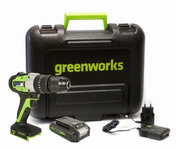 Дрель-шуруповерт аккумуляторная 24V GREENWORKS GD24DD60 - сочетает в себе три функции: сверление с ударом, сверление без удара и работа с шурупами. Предназначена для бытового применения, но может справиться и с более тяжелыми профессиональными задачами.