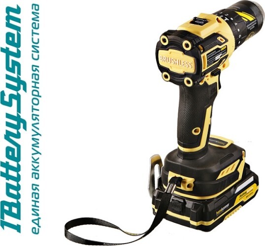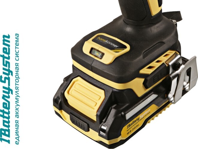 Аккумуляторная ударная дрель-шуруповерт Hanskonner HCD2065BLIC подходит для любых работ, в том числе в стесненных условиях и труднодоступных местах без снижения производительности и потери качества работ.