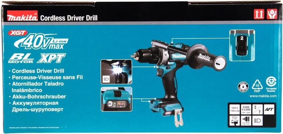 MAKITA DF001GZ специально сконструирован для промышленного применения с высокими требованиями. Встроенный бесщеточный двигатель постоянного тока (BL) не требует технического обслуживания, потребление меньше электроэнергии в стравнении со щеточными аналогами. Электронная система AFT (Active Feedback sensing Technology) - автоматическое выключение при внезапном падении скорости (защита обратного удара при заклинивании в материале).