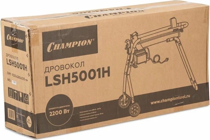 Дровокол CHAMPION LSH 5001 H оснащен асинхронным двигателем мощностью в 2,2 кВт, который позволяет значительно ускорить процесс колки дров. Время одного цикла нагрузки составляет 10 минут. Это означает, что время работы при постоянной нагрузке составляет 4 минуты, затем остановка на 6 минут. Напряжение, необходимое для работы дровокола составляет 230 Вт. Корпус агрегата выполнен из высококачественной стали и имеет специальное антикоррозийное покрытие. В комплект поставки входит насадка для колки дров на 4 части.