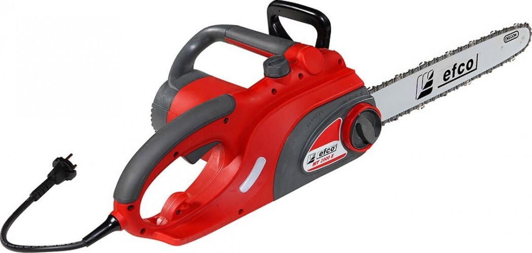 Мощность надежного и экологичного электрического двигателя составляет 2000 Вт. Устройство оснащено автоматическим масляным насосом, поэтому смазка на цепь наносится прямо во время работы. Боковая регулировка натяжения цепи на пиле производится с помощью обычной ручки. Пила электрическая цепная EFCO MT 2000 E имеет в базовой комплектации шину Oregon длиной 41 см.