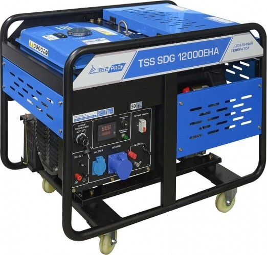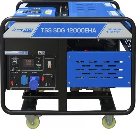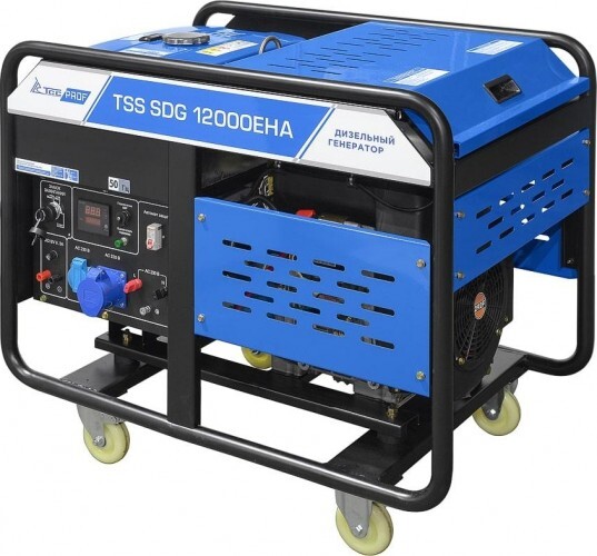Дизель генератор TSS SDG 12000EH3A с надежным и экономичным двигателем, электростартером и разъемом для подключения блока АВР. Для удобства передвижения оснащенный колесным комплектом.
