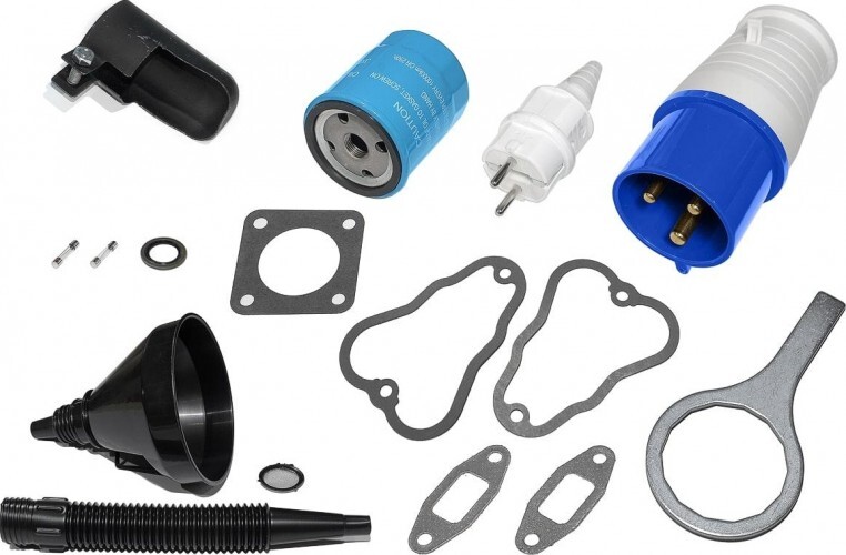 Набор инструментов в комплекте: отвертка, вилка (по количеству розеток и номиналу), ключ рожковый 10х12, ключ рожковый 14х17, ключ зажигания (2 шт.).
