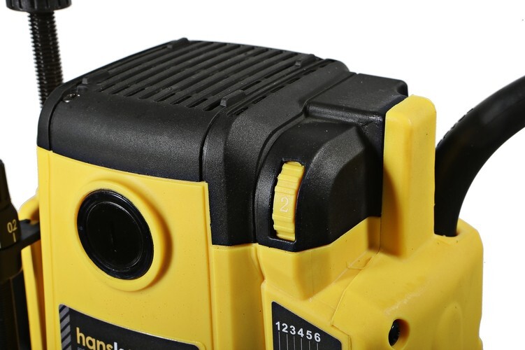 В зависимости от характеристик обрабатываемого материала устанавливается скорость вращения - от 12000 до 23000 об/мин. Мощный электродвигатель фрезера (2000 Вт) позволяет обрабатывать заготовки из пород деревьев различной твердости. Удобные прорезиненные рукоятки обеспечивают хорошую управляемость и контроль за процессом обработки. Для повышения надежности и продления срока жизни инструмента в механизме установлены качественные подшипники NSK (Япония), установлены система плавного пуска и система поддержания оборотов под нагрузкой. В комплект поставки входят цанги 6, 8 и 12 мм, параллельная направляющая с возможностью точной регулировки. Для безопасности пользователя установлен прозрачный защитный щиток, предусмотрена возможность подключения пылесоса.