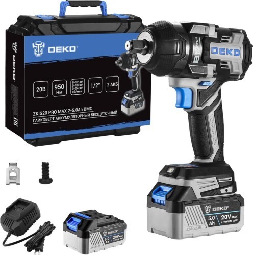 Гайковерт аккумуляторный бесщеточный DEKO ZKIS20 PRO MAX 2*5.0Ah BMC предназначен для закручивания/ослабления болтов и гаек, сборки деревянных конструкций, сантехнических и общестроительных работ.
