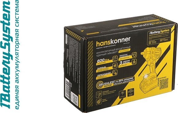 Ударный бесщеточный гайковерт Hanskonner HCD20600BL применяется для закручивания болтов и гаек. Мощный бесщеточный двигатель обеспечивает крутящий момент до 600 Нм, уменьшает вес и габариты инструмента, увеличивает продолжительность работы и ресурс.