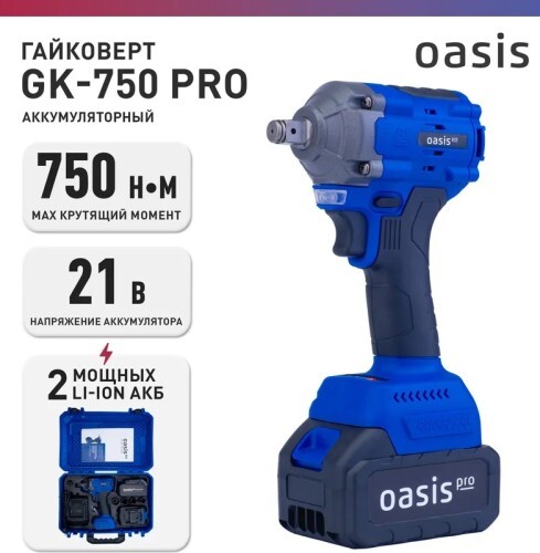 Аккумуляторный гайковёрт Oasis GK-750 Pro ударный инструмент, предназначенный для профессиональных и бытовых работ, связанных с закручиванием и откручиванием крепёжных элементов. Это устройство сочетает в себе высокую мощность и удобство использования, что делает его незаменимым инструментом как для мастеров, так и для домашних пользователей.