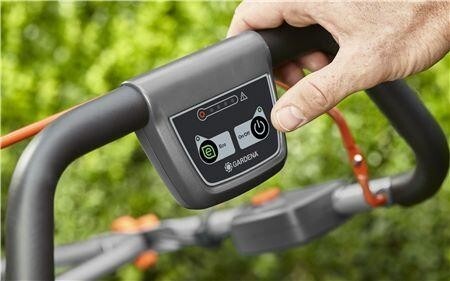 Интуитивная клавиатура на ручке отображает уровень зарядки аккумулятора. Активация режима Eco для максимальной продолжительности работы газонокосилки также выполняется нажатием кнопки.