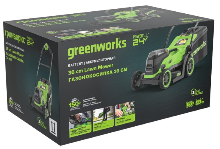 Аккумуляторная газонокосилка Greenworks G24X2LM361