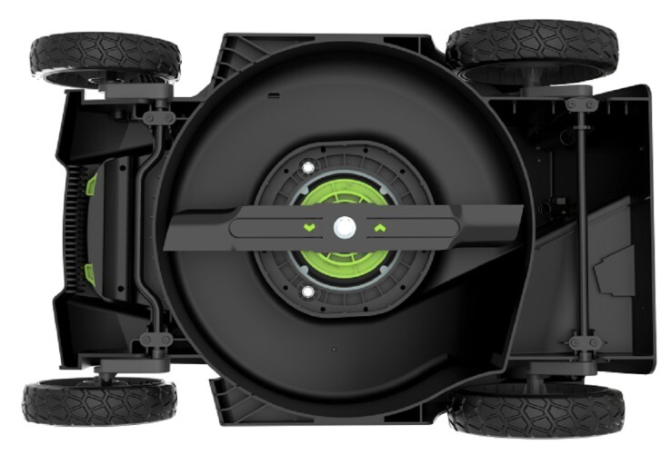 Дека из ударопрочного пластика, устойчивого к попаданию посторонних предметов, таких как небольшие камни. Ручка газонокосилки складная, что удобно при хранении.