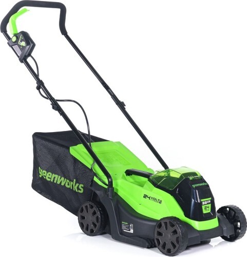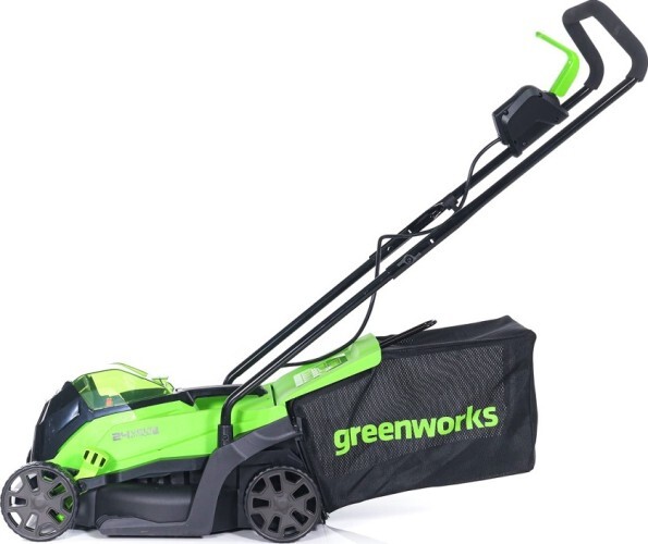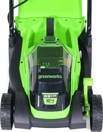 Газонокосилка аккумуляторная Greenworks Арт. 2516107, 24V, 33 см, бесщеточная. Полноценная альтернатива инструменту с питанием от сети или бензиновому. Газонокосилка выполняет две функции: сбор травы в травосборник и мульчирование. Высота скашивания имеет 5 ступеней регулировки, для удобства регулировка производится одной ручкой расположенной на деке у переднего колеса. Дека газонокосилки выполнена из ударопрочного пластика, устойчивого к попаданию посторонних предметов, таких как небольшие камни. Работа от Li-ion аккумулятора 24V совместимого c 70 инструментами для сада, дома и мастерской из линейки Greenworks 24V. На инструмент предоставляется расширенная гарантия 3 года. Этот комплект поставляется без аккумулятора (АКБ) и зарядного устройства (ЗУ).