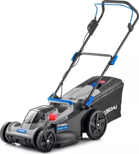 Газонокосилка аккумуляторная HYUNDAI LA 4043, несамходная, шириной кошения 43 см. Для работы газонокосилки требуется установка двух аккумуляторов по 20 Вольт. Рекомендуемая емкость 4 А/ч. В штатной комплектации поставляется набор мульчирования. Нож аэродинамической формы создает усиленную подъемную силу, обеспечивает наилучшее наполнение травосборника объемом 45 литров. Купить аккумуляторную газонокосилку Hyundai LA 4043 рекомендуем для скашивания газона площадью до 500 м2.