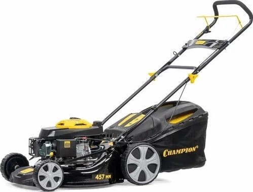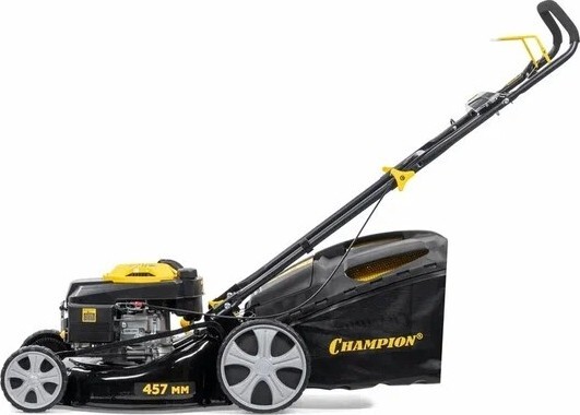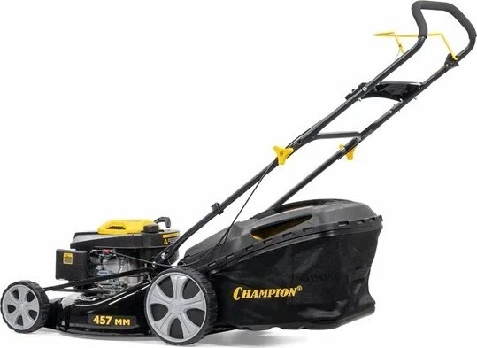 Газонокосилка бензиновая Champion LM 4622 – легкая сверх тихая бензиновая газонокосилка известного китайского бренда Champion. Косилка оборудована четырехтактным бензиновым мотором с верхним расположением клапанов и вертикальным валом. Небольшая мощность косилки в 3 лошадиные силы, является достаточной, так как у косилки нет привода на колеса, и вся мощность идет на вращение стального двухлопастного ножа. Для удобства запуска, двигатель оборудован примером подкачки топлива напрямую в карбюратор, позволяя завести косилку одним рывком кик стартера. У косилки присутствуют большие задние колеса для удобства передвижения по заросшему или неровному газону. Не смотря на отсутствие хода, косилка обладает полным функционалом относительно режимов кошения.
