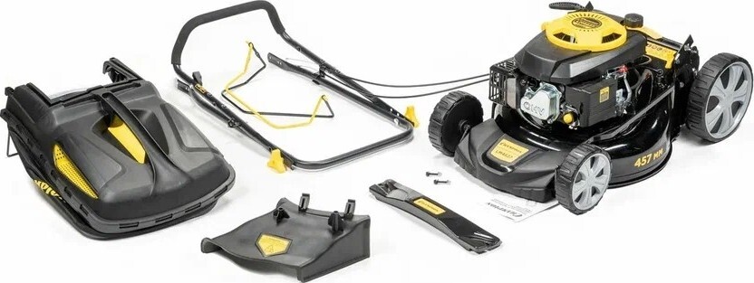 Качеств, которыми наделена бензиновая газонокосилка Champion LM 4627, вполне достаточно для реализации подобных задач. Кроме того такое компактное устройство способно работать в интенсивном режиме в сложных условиях. Поэтому такую модель приобретают коммунальные хозяйства и службы облагораживания и озеленения ландшафта. Современный прочный материал, из которого изготовлен режущий инструмент, позволяет быть уверенным в надежности такого узла. Ножи на протяжении длительного периода не тупятся и не изнашиваются. Частой замены этих деталей конструкции не потребуется. Нож состоит из двух лопастей, которые в сочетании с высоким положением металлической деки позволяют прибору засасывать обрезки растений и мелкий мусор с газона. Эта особенность делает очистку участка наиболее эффективной.