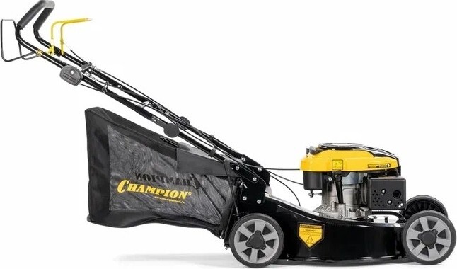Газонокосилка бензиновая Champion LM5645. Самоходная, для больших площадей с большой шириной захвата 56 см и алюминиевой декой. Колеса на подшипниках, мульчирование, центральная регулировка высоты скашивания. предназначена для ухода за газоном на приусадебном участке. Имеет режим мульчирования, при котором трава измельчается и выбрасывается на лужайку в виде мельчайших частиц. Травосборник рассчитан на 75 литров отходов, что увеличивает продолжительность рабочего цикла. Привод на задние колеса позволяет экономить силы оператора в процессе работы. Рукоятка газонокосилки легко складывается для экономии места при хранении и транспортировке.